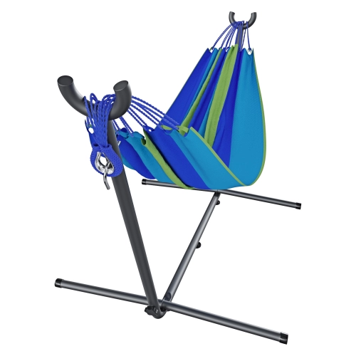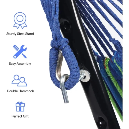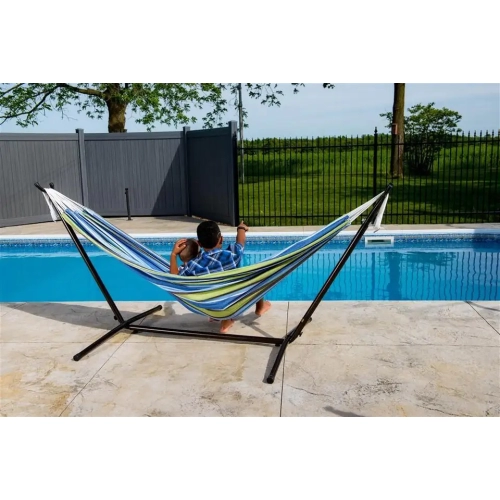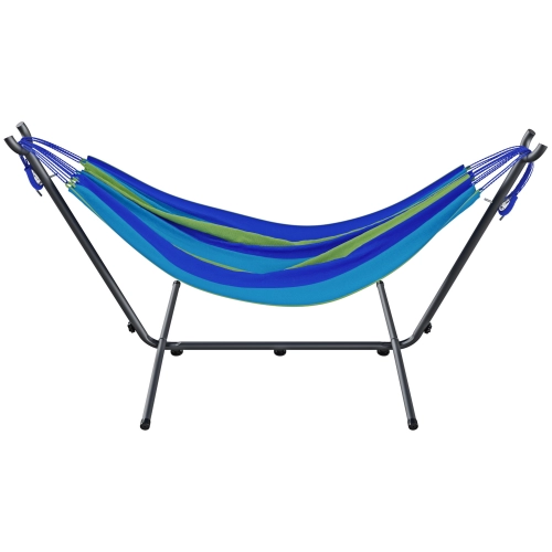 Amaca Da Giardino Con Supporto In Acciaio Portata 200 Kg Altezza Regolabile Telo Cotone Resistente Amaca Brasiliana Esterno Terrazzo Piscina Balcone Con Borsa 265 x 110 x 100 Cm Multicolore Blu